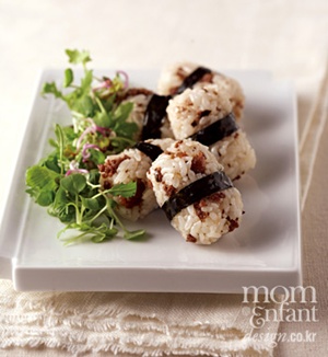 4 따뜻한 진밥에 ③을 섞어 원하는 모양의 주먹밥을 만든다.