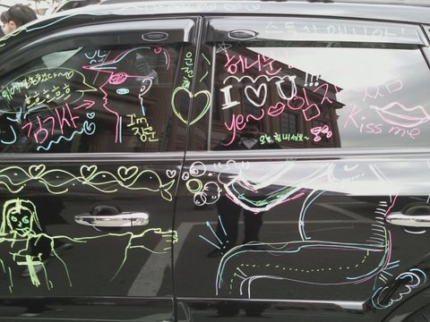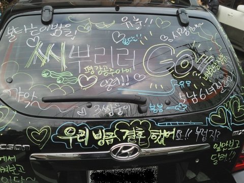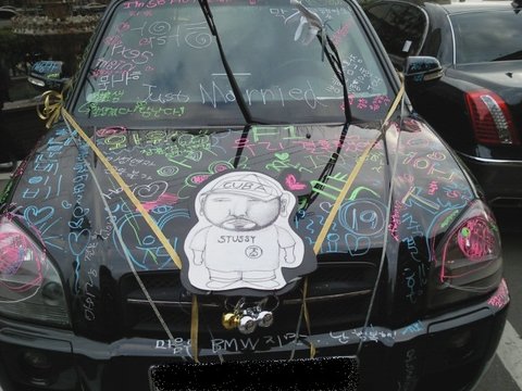 식이끝나고 우린 밥을 미루고 웨딩카 치장에 나섰