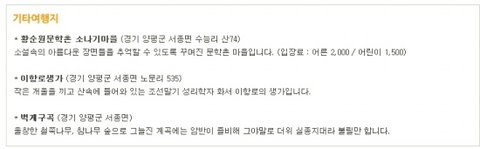 양평은 각종 자연체험과 문화 생태학습에 도움이 될만한 코스여행지가 많은 곳입니다. 관람의 목적을 넘어선 손수 체험, 일정을 통한 학습까지 즐길 수 있는 다양한 프로그램들이 많은데요, 특히 가족단위 여행객들에게는 아이들에게 좋은 추억을 남겨주기 좋은 기회라고 할 수 있죠.