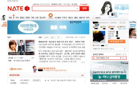 (출처: 2010년12월8일 수요일, www.nate.com 메인화면)