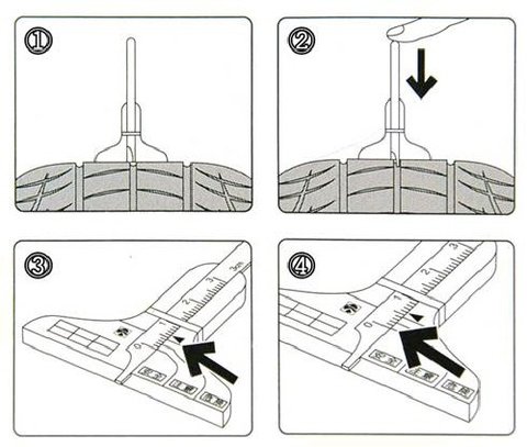 타이어 마모 체커를 타이어 중앙에 놓은 다음,