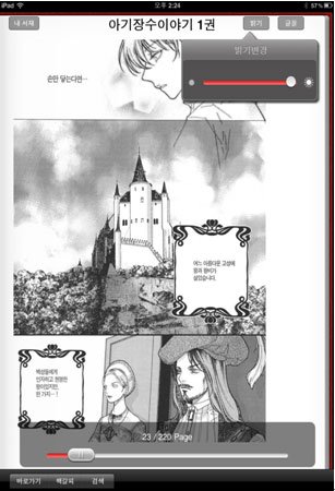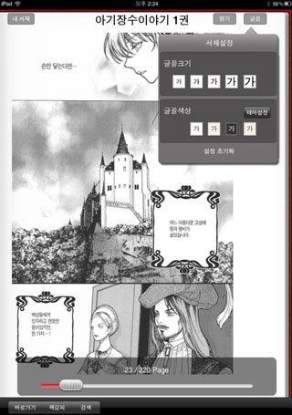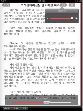밝기와 글꼴 조정은 물론 하단의 page bar 를 통해