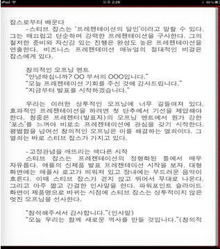 아이패드는 책 한장과 비슷한 크기의 화면을 가지고 있어 많은 양을 표시할 수 있으며