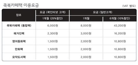 쿡북카페팩 이용 요금에 관한 정보 입니다.