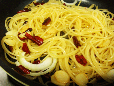 (주의! 기름은 버리지 마세요!! 이 기름이 바로 파스타의 소스입니다.)