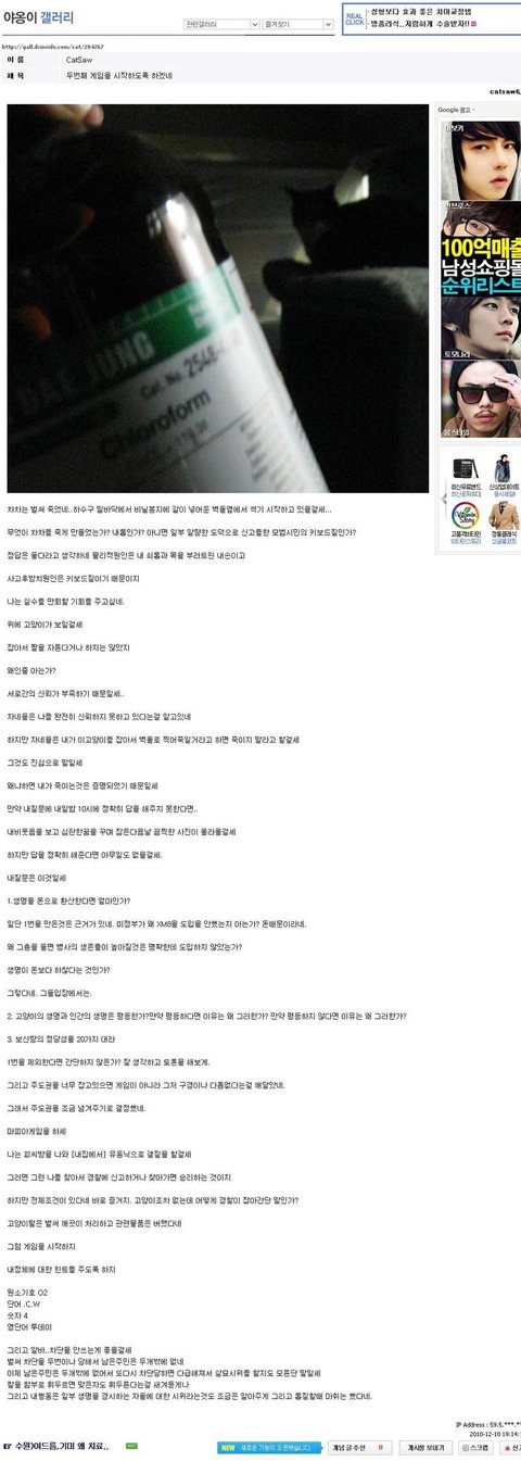 위의 사진은 10일 저녁 7시가 조금 지난 시간 DC에 또다시 올라온 캣쏘우의 글입니다.
