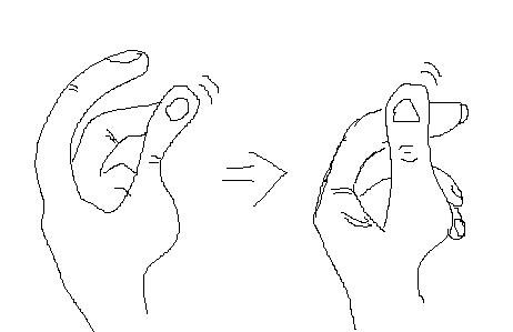 (엄지와 중지를 이용하여(빚겨치기하여) 소리를 내는 손놀이)