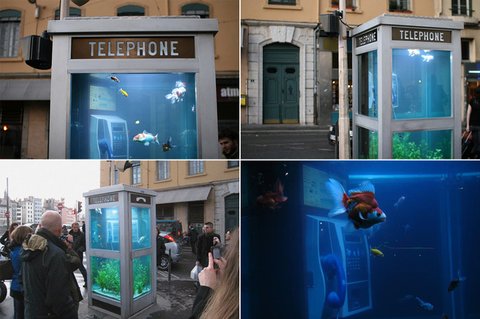 그러나 공중전화박스도 이렇게 아름다운 수족관으로 다시 태어날 수 있습니다.