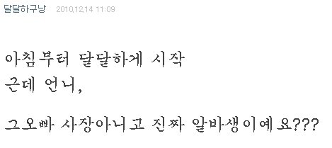 "아 진짜 사장 너무 심해 무슨 오빠가 기계야?ㅋㅋㅋㅋ알바생이 기계도 아니고~"