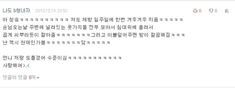 그게 B형이란 혈액형 얘기여서 더 좋았음 ㅋㅋ