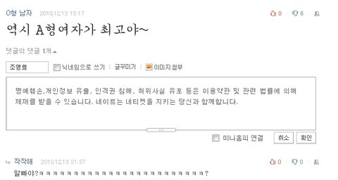 그 A형 남자분!!! 콩콩 님에게 당장 사과하세요!!
