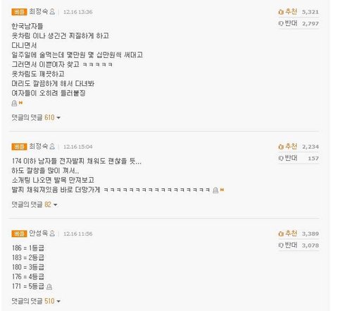 과연 한국의 여성 네티즌들이 올린 글인지 눈을 의심할 정도임.