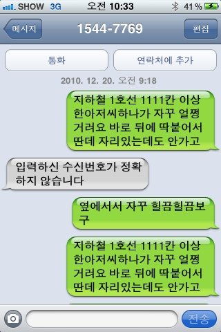 치한을 만나고 난 아이폰으로 네이버에 접속해 1호선불편신고문자를 찾았다.