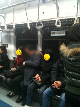 또 몇번 엉덩이에 손같은게?(손인지는 확실히 모르겠다.두꺼운 옷을 입고있어서...)닿아서 뒤를 한 수십번을 돌아보는데도 자리옮길 생각을 안하는..