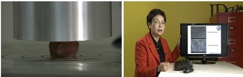 먼저, 오븐 조리법 과 수비드 조리법을 비교해 보았다. 오븐에서 조리한 보쌈은 익숙한 맛의 풍미는 있지만 수비드 조리법 으로 만든 보쌈의 질감이 더 부드러웠다. 또한 수비드 기법으로 조리한 보쌈은 부드럽고 육즙이 많으며 비계가 부드럽고 탄력이 있었다. 이 뿐 만이 아니다. 강도 수치 에서 역시 수비드 는 일반 오븐 조리를 한 보쌈의 씹는 세기가 1/3 정도 밖에 들지 않았을 정도로 강도 역시 더 무렀다. 그렇다면 고기 조직의 단면은 어떨까? 고성능 전자 현미경으로 단면을 살펴본 결과, 근섬유와 섬유소 사이의 간격이 넓었다. 섬유소 사이의 간격이 넓다는 것은 바로 조직의 부드러움을 의미한다.