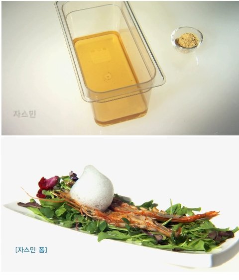 두번 째로, 레시타 거품 기법으로 조리한 성게미역국의 거품 (Form) 은 맛을 극대화 시키기 때문에 기존 요리법과 동일한 풍미의 미역국을 조리하는 것이 가능하다. 마지막 고체화 기법 으로 만든 간장 게장 은 고체화 기법 으로 인해 요리사가 원하는 정량의 소스를 만드는 것이 가능하며 식자재와 완벽한 조화를 이룬다.