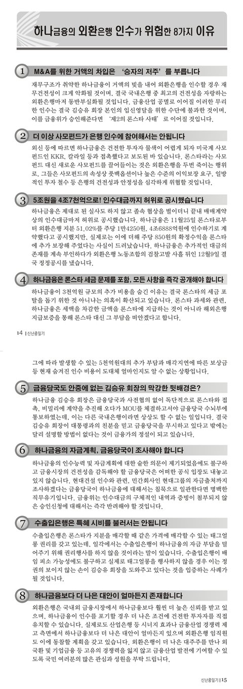 이 똘똘 뭉쳐 있는 외환은행을 인수하다니..정말 기가차고 어이가 없을 겁니다.