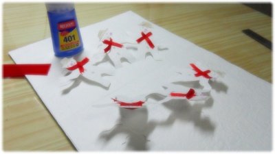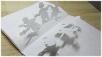 칼질한 반대쪽으로 애들을 일으켜 세우고 뒤에 똑같은 크기의 두꺼운 종이를 대면