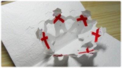이제 70% 완성임. 야들 세워서 손을 이어주면 이렇게 입체 카드가 됨!!