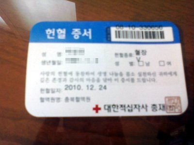 아.. 전 이브날을 맞아 헌혈을 했습니다!
