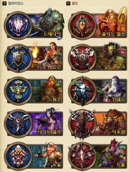와우의 종족을 살펴보면 아래와같다.
