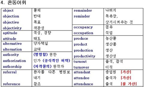 동의어, 유의어, 혼동하기 쉬운 어휘, 복합명사, 전치사 동사에 따라 분류된 숙어 등 중요한 모든 것이 정리 되어 있습니다^^