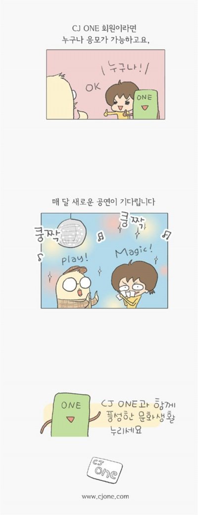 CJ ONE 홈페이지 구경하다가 서나래 작가의 카툰이 있길래 가지고 와봄.