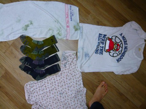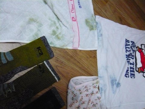 같이 돌렸던 옷이며 수건이며 죄다 양말 색이 묻어나와서