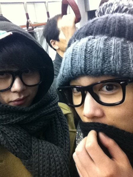 이홍기는 트위터에 "나랑 준형이 지금 지하철 투어 중. 급하게 산 커플 목도리ㅋㅋ아 긴장되고 무섭다.