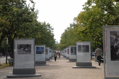 독일 베를린의 한 거리. 양옆의 차도와 가운데 인도로 형성되었고,
