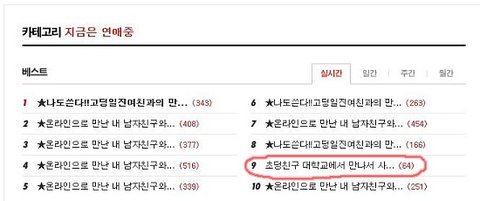 쉐솽: 하지만 지금은 연애중 베스트엔 온통 온라인 그 님 글 뿐.....흑흑..ㅜㅜ