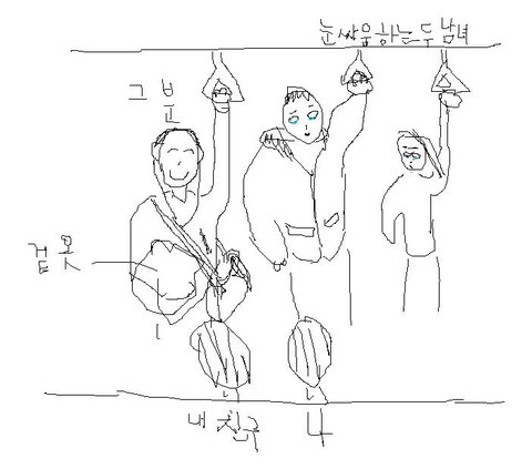 근데 한손엔 겉옷과 목도리? 같은 짐들을 들고있었고 한손은 손잡이를 잡고있어서