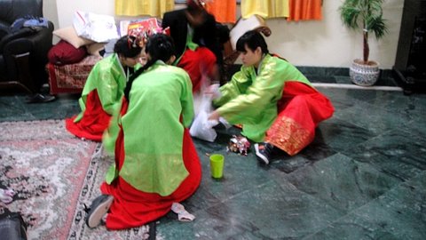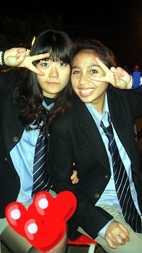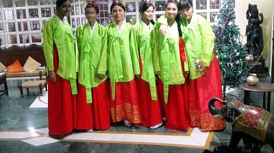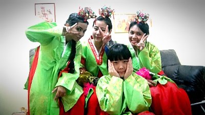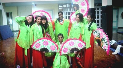 저랑 제동생 ,한국인 두명이랑 인도네시아애들 2명 글구 인도애들 3명으로 부채춤을 쳤어요