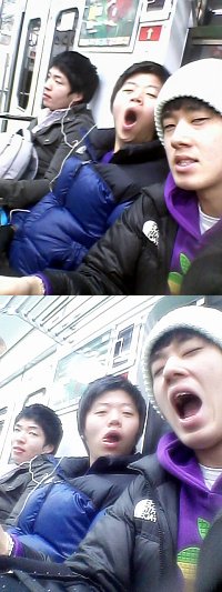학교 마지막날 내기를 끝내고 택시를 타고와서 울산으로 가는 스쿨버스를 같이 기다리면서