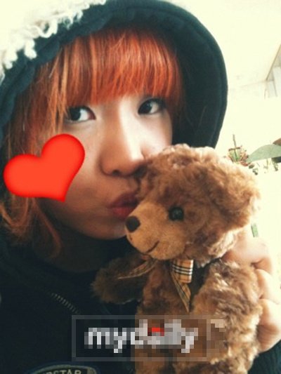 테디베어에게 뽀뽀하고 있는 민지양 ㅜㅜ