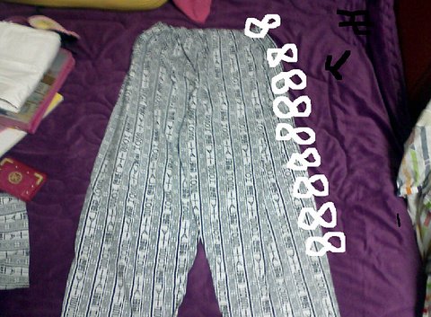 바지에 고무줄이있는게아니라 한쪽다리전체가 끈으로 묶게돼있음