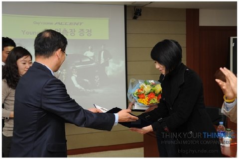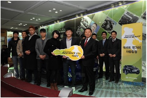 향후 1년간 현대자동차 엑센트 홍보대사로 활동할 영가이를 임명하는