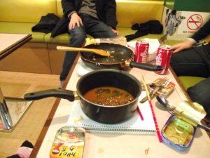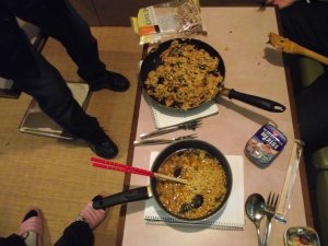 우리는 우리가 가져온 한국 음식을 다 먹자는 의미에서....