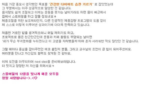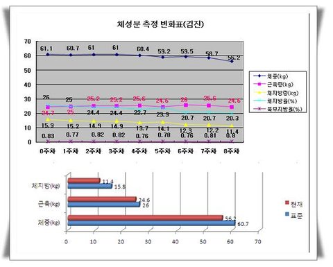 슬렌더톤 시스템을 사용한 후 8주간의 성적표입니다.