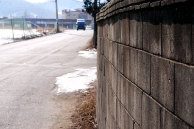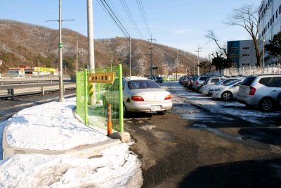 왼쪽은 눈이 수북히 쌓여있는 인도길이지만 찻길이 바싹붙어있는곳이고