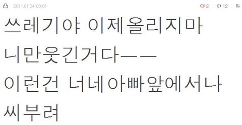 >>아빠앞에서 씨부렸는데 재미없으시데요ㅋㅋㅋ 됬음?