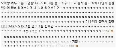 아빠가 문열어주길래 그분 빡쳐가지고 울면서 아빠한테 똥던짐