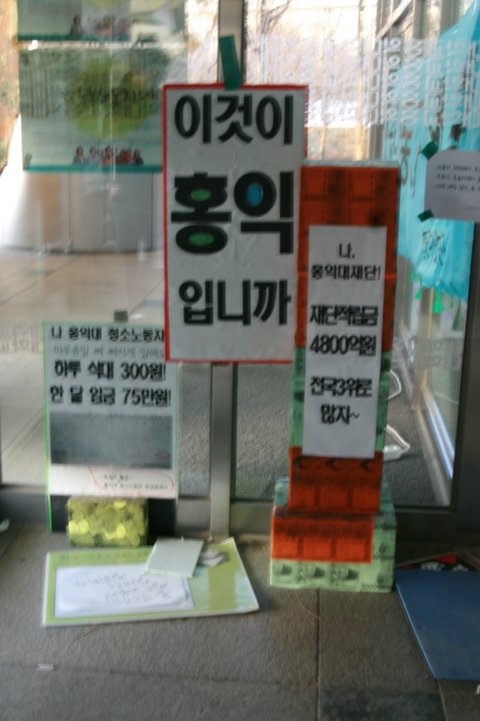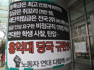 지난 서울대 병원 청소노조의 3차례 파업으로 용역업체가 바뀌어 그들의 노동 환경이 개선되었는데 이번 홍익대 농성활동이 어떻게 끝맺어 질지...
