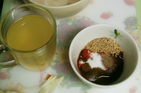 (양념장) 고추장 1큰술, 고춧가루 1큰술, 간장 1큰술, 설탕 1큰술, 후추 1/2 작은술, 통깨 1큰술
