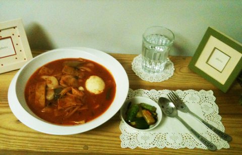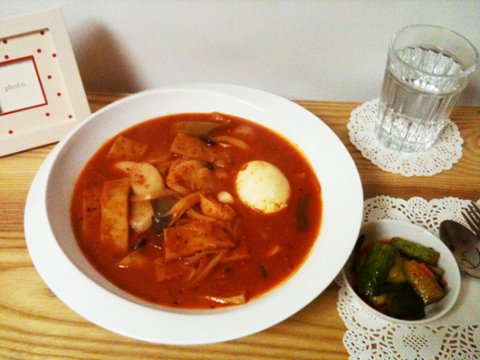 (2인 기준) 떡 2컵 , 어묵 1장, 대파 1뿌리, 마늘 3쪽, 양파 1/2개, 청양고추 3개, 느타리버섯 5개 , 계란 1개 , 물 2컵, 멸치육수 1컵 (없을시 다시다 1작은술)
