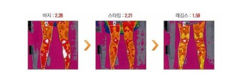 실제로 적외선 체열 실험결과로 스타킹>레깅스>청바지 순으로 보온력이 측정되기도 했다.