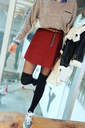 다이어트 해도 두꺼운 겨울옷에 가려질 뿐. 이럴 때 그나마 가꿔온 자신의 늘씬한 다리라도 보이게 하지 않는다면 S자 몸매고 뭐고 없다. 그러기에 스타킹+미니스커트는 몸을 따듯하게 해주면서도 드러낸 다리로 "나는 날씬하다"라는 것을 보일 수 있다.