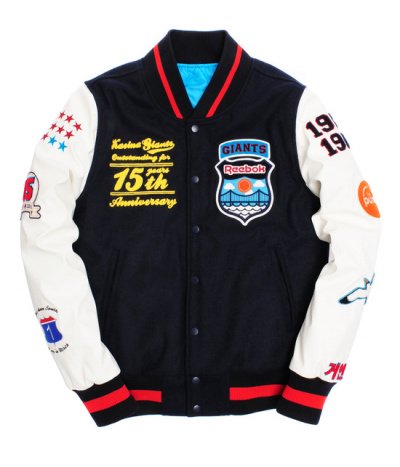 자켓은 오리지널 베이스볼 자켓 위에 리복 펌프 로고와 함께