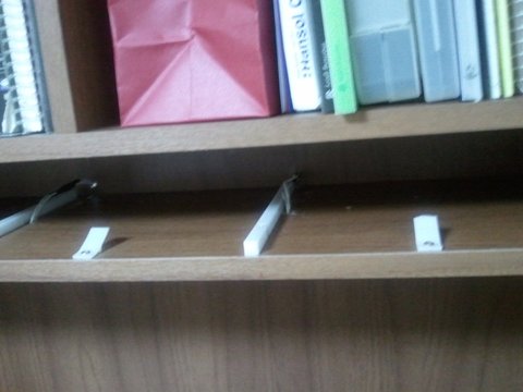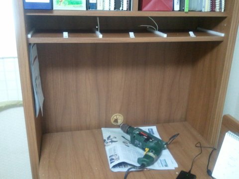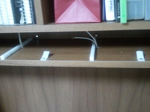 책장 뒷쪽 모습입니다. 서랍쪽에서 빠져나온 배선들