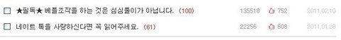 베플 조작자 분들에게 고합니다.